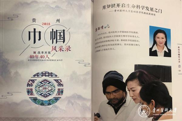 导读:为庆祝改革开放40周年和凝聚女性力量助力脱贫攻坚,贵州省在各行业内评选出了40位杰出女性代表,永利官网基础医学院教授康颖倩有幸入选,成为“改革开放40年40人——贵州巾帼风采录”杰出女性代表,并参加了省委宣传部、省妇联及省妇儿工委办在贵阳召开的庆祝改革开放40周年暨“凝聚女性力量·助力脱贫攻坚”主题分享会。让我们一起来了解她的个人事迹。