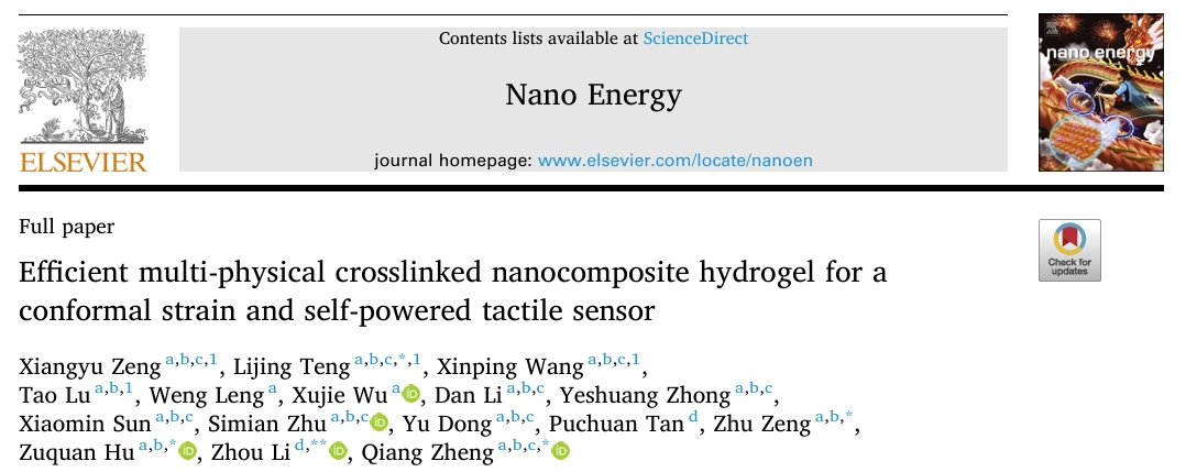 本文共同通讯作者:郑强教授、胡祖权教授、曾柱教授、滕丽晶副教授,77779193永利官网生物与工程学院(健康医药现代产业学院);李舟研究员,中国科学院北京纳米能源与系统研究所。曾祥堉副教授、滕丽晶副教授、在读硕士研究生王欣苹以及卢涛副教授为论文共同第一作者。