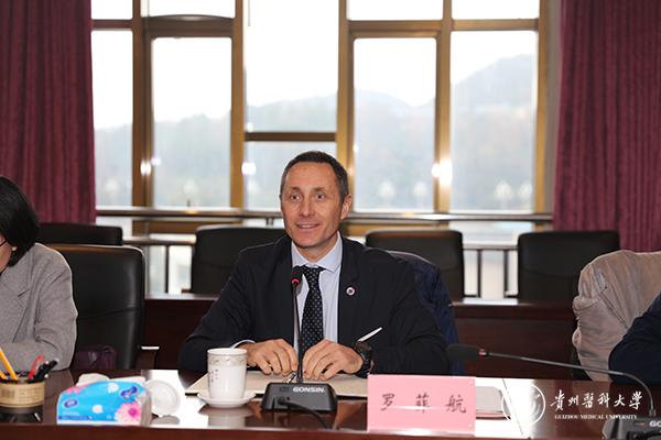 12月6日,在贵州省外事办公室仲婉琦的陪同下,法国民事安全技术顾问罗菲航先生,法国洞穴联盟驻中国洞穴联络官让·波塔西先生来永利官网交流访问。双方在南校区知雨楼六楼会议室召开座谈会,副校长罗鹏出席会议,国际交流合作处、运动与健康学院主要负责人及老师参加会议,会议由国际交流合作处处长付启宏主持。