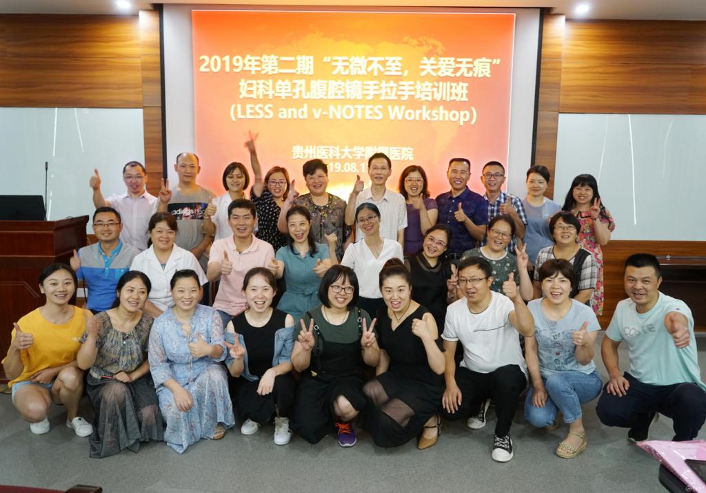 贵医附院2019年4月、8月在内镜与微创腹腔镜培训基地已成功举办两期“无微不至,关爱无痕”—妇科单孔腹腔镜手拉手培训班(LESS Workshop)。培训内容涵盖了单孔腹腔镜发展简史、单孔腹腔镜手术技巧、单孔腹腔镜入路、器械使用、缝合技巧等进行深入讨论和经验交流。模拟器进行干式模拟试验,手把手动物实验(猪)、手术直播、手术现场观摩、术中手术配合及围手术期护理、术后ERAS等。