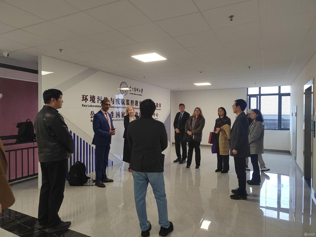 座谈结束后,昆士兰大学代表团实地走访生物工程学院(健康医药现代产业学院)、公共卫生与健康学院,考察教学实验室、科研平台及育人环境,深入了解学生学习实践条件。代表团还与2024级、2025级“中高计划”学生面对面交流,针对海外学习适应、专业知识衔接、学术规划等关切问题细致答疑,分享昆士兰大学课程设置、校园生活及科研资源,为学生赴澳学习搭建前置沟通桥梁,坚定其参与联合培养的信心。