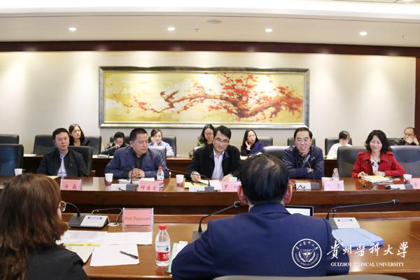 3月31日,泰国宋卡王子大学Virasakldi教授、Tippawan教授一行到永利官网交流及开展CMB资助攻读博士研究生遴选工作。罗鹏副校长、战勇副书记出席,会议由国际合作交流处处长付启宏主持,医药卫生管理学院全体职工参加。