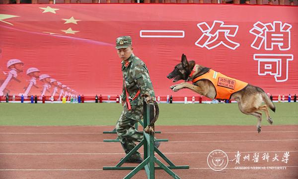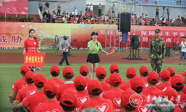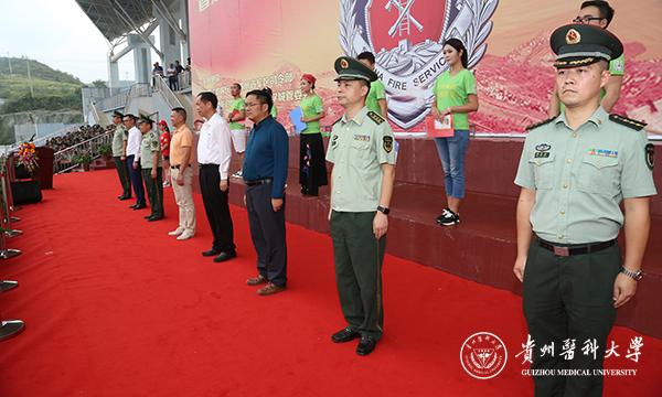 省教育厅党组成员、副厅长级督学杨勇,省消防总队江平总工程师,贵安新区大学城管委会罗松华主任,学校党委书记林昌虎、副校长冉江舟,消防部队官兵,贵州省消防宣传形象大使阿幼朵、景伟健,贵州广播电台“阳光952柳叶眉工作室”全体人员,贵州省九所高校的领导、老师、同学及永利官网五千余名师生在贵医齐聚,共同参加此次活动。整个活动分为消防志愿者宣誓、高校消防志愿者队伍授旗仪式、消防装备器材展示、消防搜救犬技能表演、现场消防知识抢答比赛、高校(校际)大学生消防技能大比武等环节;在场的参与者,特别是今年刚踏入大学校门的新生们不仅接受了一次消防安全知识教育,了解了安全工作的重要性,更近距离的接触体会到了战斗在一线消防官兵们的艰辛与不易。