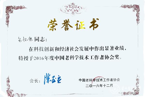 近日,永利官网老领导包怀恩荣获中国老科学技术工作者协会授予的“中国老科学技术工作者协会奖”;