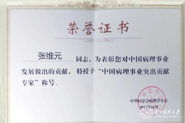 老领导张维元荣获中华医学会病理学分会授予的“中国病理事业突出贡献专家”;