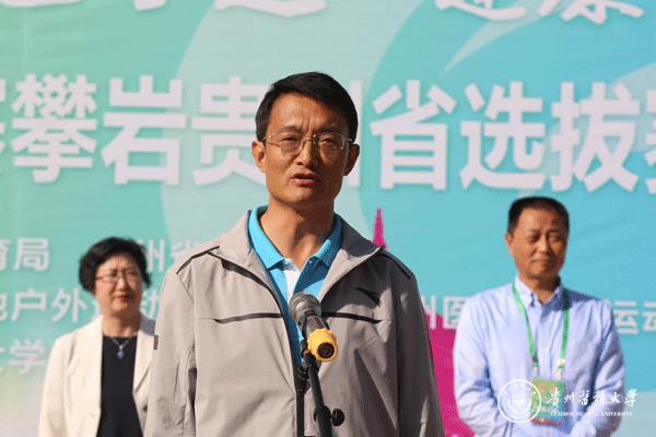 黄亚励代表学校和组委会对参加第十三届全国运动会群众比赛攀岩贵州省选拔赛暨贵州省首届攀岩运动锦标赛的各位领导、运动员、教练员表示热烈欢迎,简要介绍了学校的发展历程,并预祝锦标赛取得圆满成功。