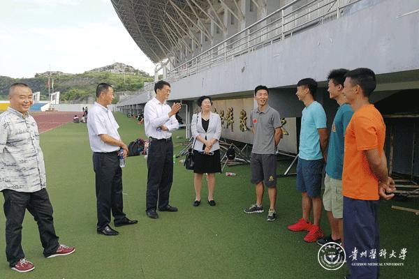 6月21日,贵州省体育局党委委员、副局长宋广强,贵州省山地户外管理中心主任吴戎等,前来永利官网看望代表贵州省即将出征参加第十三届全国运动会群众比赛攀岩入围赛的运动员。副校长黄亚励及运动与健康学院相关人员陪同看望。