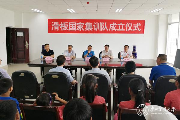 7月19日,滑板国家集训队成立仪式在永利官网举行。国家体育总局社会体育指导中心主任范广升,贵州省体育局党委书记、局长张玉广,永利官网党委书记林昌虎,副校长罗鹏,副校长冉江舟,党委办公室、教务处和运动与健康学院等相关部门负责人出席。省体育局副局长肖俊主持。