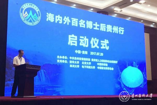 7月20日,“海内外百名博士后贵州行”活动在贵阳启动。来自清华大学、北京大学、中国科学院、四川大学、电子科技大学、中国留日同学总会的138名博士后将在未来一周深入贵州企事业单位,开展重点课题攻关、项目合作和技术咨询等智力支持活动。此次活动由省委组织部和省人社厅共同举办,是推动永不落幕的中国贵州人才博览会招才引智常态化的创新举措。省人力资源社会保障厅党组书记阳向东主持启动仪式。学校党委书记林昌虎应邀作为项目对接单位代表在启动仪式上发言。校党委副书记战勇、校长助理周余来、相关职能部门和二级学院负责人参加。