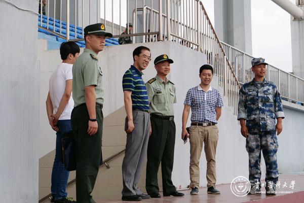 8月24日,贵州省军区战备建设局局长赵平大校一行到永利官网南校区指导检查调研军训工作,在运动场参观2017级新生的军训开展情况。党委副书记战勇出席调研活动并讲话。