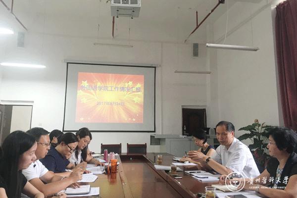 在听取外国语学院党政主要负责人工作情况汇报后,林昌虎、黄亚励与参会人员就外国语学院目前的工作状况和学科建设等方面进行深入交流,对各项工作进行了细致指导。