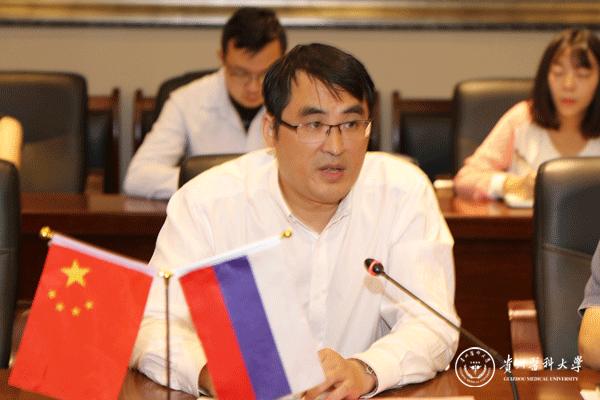 罗鹏致欢迎辞,指出本次项目意在提升中俄两国青年创客和大学生分析市场、获取资源以及进行创业实践的能力,欢迎优秀青年企业家加入永利官网贵州省青年大健康创业孵化园。