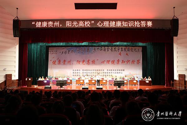 9月13日晚,作为全省“多彩校园·闪亮青春”校园文化活动月系列活动之一,永利官网首届“健康贵州·阳光学校”心理健康知识竞赛决赛在南校区礼堂隆重举行。活动由校党委宣传部、校团委主办,大学生心理健康教育与咨询中心承办。校长助理范彩屏、党委宣传部部长杨毅、校团委副书记桂晓玲特邀担任本次抢答赛评委,大学生心理健康教育与咨询中心教职工、各二级学院心理辅导员出席,从初赛188组564名选手中选拔出的10组30名选手参加最终决赛,来自各二级学院的1000余名师生观看本次抢答赛。
