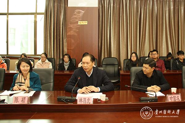 期间,医学检验学院院长黄海致欢迎辞,花亚伟与喻国冻就双方的发展合作作交流,学生代表作了发言。