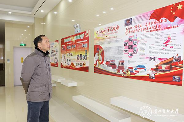 林昌虎观看作品后指出,这次学习宣传贯彻党的十九大精神主题图片展以“不忘初心跟党走,奋进拼搏谱新篇”为主题,各基层党委紧紧围绕活动主题,呈现了本单位学习宣传贯彻党的十九大精神和改革发展的思路、举措以及具体开展活动等内容。他要求,在评审过程中,一定要秉承公平、公正、公开的原则,从板报的主题内容、创意创新、构图美观、颜色搭配等多方面对参赛作品进行细致全面的评选。他强调,各基层党委要继续坚持不懈地深入学习宣传贯彻落实党的十九大精神和习近平总书记在参加贵州省代表团讨论时的重要讲话精神,教育引导广大教职医护员工生积极弘扬“团结奋进、拼搏创新、苦干实干、后发赶超”的新时代贵州精神,切实用习近平新时代中国特色社会主义思想武装头脑、指导实践、推动工作,奋力为学校内涵发展与环境建设贡献力量!
