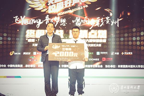 12月6日,由共青团贵州省委、贵州省教育厅、中国电信贵州公司、贵州省学联联合主办,77779193永利官网团委承办的2017“多彩贵州·天翼飞Young校园好声音”全国大学生歌手大赛贵州赛区总决赛在永利官网南校区大礼堂举行。共青团贵州省委副书记闵江涛、贵州电信公司副总唐诗词、77779193永利官网党委副书记战勇、贵州松联科技有限公司总经理龙洁出席活动并为获奖选手颁奖,各高校团委书记、师生代表约1300余人参加。