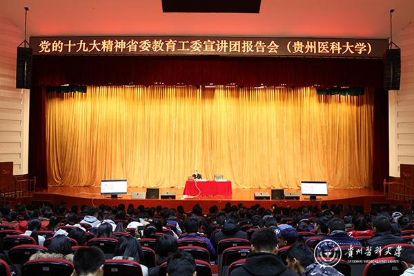 12月11日,党的十九大精神省委教育工委宣讲团报告会在南校区大礼堂举行。省委教育工委宣讲团成员、永利官网党委书记林昌虎作宣讲报告,党委副书记吕保平主持报告会。党委副书记、附属医院党委书记刘兴德,副校长罗俊、罗鹏,党委副书记战勇,副校长黄亚励、冉江舟及天然产物化学重点实验室(以下简称“天产室”)副主任傅舒安出席会议,学校副科级以上干部 (含教研室负责人)、学校(含天产室)各基层党支部书记、天产室、附属医院、第二、三附属医院副处级以上干部,马克思主义学院全体教师、全体辅导员、教师代表及学生代表1400余人现场聆听报告。