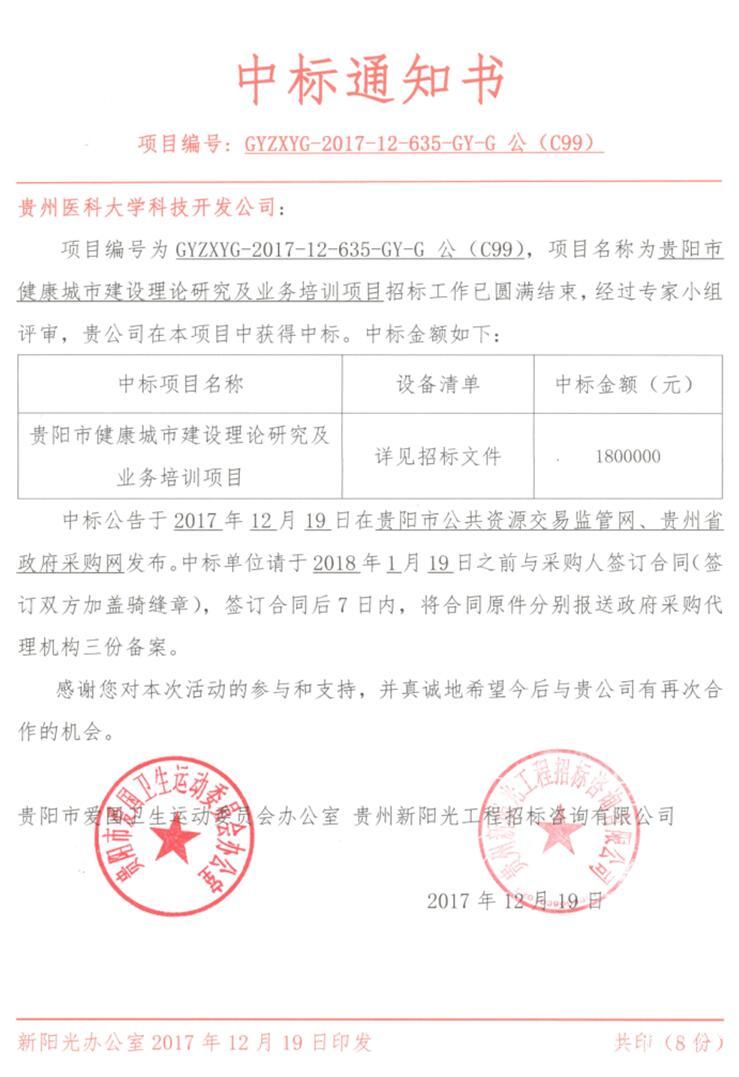 为科学有序地推进贵阳健康城市建设工作,贵阳市政府设立贵阳市健康城市建设项目,并举行公开招标。永利官网贵州省卫生发展研究院经过前期充分调研准备,2017年12月19日,在第三方组织的公开竞标中脱颖而出,获项目经费180万元。2018年元月,在贵阳市爱卫会的指导下正式实施。该项目实施周期一年,其中包含编制建设规划、理论研究30个子项目,规模性理论培训12次,实践指导50家健康细胞建设单位,研究成果汇编成册并公开发行用于实践指导等。