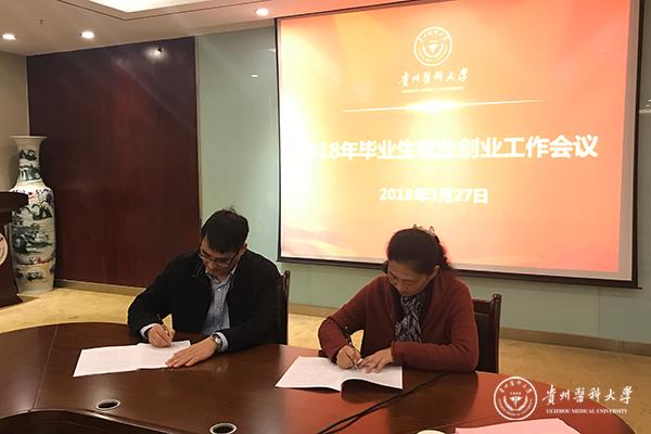 罗鹏代表学校就业工作领导小组对2017年就业创业工作先进单位药学院等8个单位和先进个人李莉等17人进行了表彰,并与各学院签订了《77779193永利官网2018届毕业生就业工作目标责任书》。