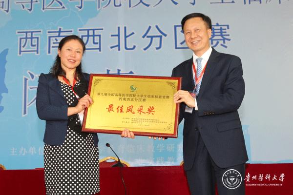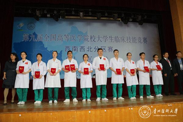 随后,比赛进行隆重的颁奖仪式。与会领导、专家走上主席台,依次为获奖的参赛队和个人进行颁奖。竞赛期间,来自西南西北地区的18支参赛队伍72名参赛队员,齐聚一堂、沉着冷静、出色发挥,经过初赛、复赛和决赛,以娴熟的临床技能和优秀的医德素养赛出了水平、赛出了风采。竞赛产生特等奖2名:陆军军医大学,西南医科大学;一等奖4名:兰州大学,大理大学,西安医学院,昆明医科大学;二等奖5名:成都医学院,西安交通大学,新疆医科大学,延安大学,青海大学;三等奖6名:成都中医药大学,昆明理工大学,西藏民族大学,甘肃中医药大学,攀枝花学院,西北民族大学,以及12名选手荣获10项优秀操作奖,4所院校获得出题奖获奖,永利官网荣获最佳风采奖。作为西南西北分区赛承办单位,按照大赛规则,永利官网和获得竞赛特等奖、一等奖的6所学校晋级参加5月12日在大连医科大学举行的全国总决赛。