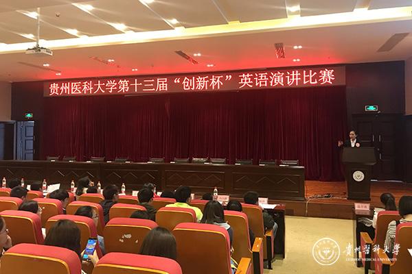 5月9日,由校团委、外国语学院主办的77779193永利官网第十三届“创新杯”英语演讲比赛在南校区道德讲堂举行。副校长黄亚励,校学生处、生物与工程学院、基础医学院、大健康学院、外国语学院有关负责人出席。外国语学院党委书记张婷婷、外国语学院主持工作副院长龙芸、外国语学院副院长冉海勇、外国语学院研究生教研室主任罗运琴、外国语学院综合办副主任杨发莉担任比赛评委,外国语学院翻译系负责人冯小娇、外籍教师Jacob担任提问嘉宾。