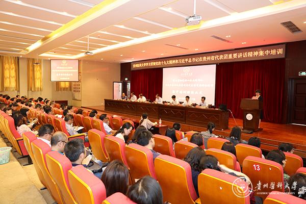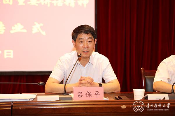 5月17日,学校学习贯彻党的十九大精神和习近平总书记在贵州省代表团重要讲话精神集中培训班结业仪式在南校区道德讲堂举行。党委书记林昌虎出席仪式并作讲话,党委副书记吕保平对此次集中培训作总结,党委副书记战勇主持结业仪式。校领导刘兴德、冉江舟,天产室领导杨小生、傅舒安出席。全校副科级以上干部,天产室、附属医院、第二附属医院及第三附属医院副处级以上干部参加结业仪式。