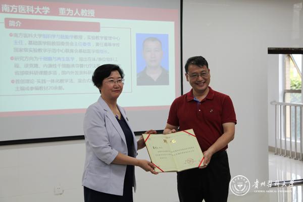 授聘仪式环节,基础医学院副院长康颖倩分别介绍基础医学国家级实验教学示范中心(77779193永利官网)教学指导委员会成员,南方医科大学实验教学管理中心教授董为人教授为主任委员,委员为:北京大学医学部王韵教授、安徽医科大学实验教学中心汪思应教授、上海交通大学基础医学实验教学中心顾鸣敏教授、广州中医药大学基础医学院病理学与病理生理学系苏宁教授、 上海梦之路数字有限公司总经理高俊辉、77779193永利官网基础医学院曾柱教授。黄亚励向教学指导委员会全体成员颁发聘书。