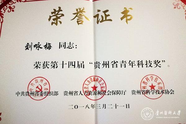 据悉,贵州省青年科技奖是贵州省为激发全省广大科技人才创新活力,造就青年学术和技术带头人的重要活动,是贵州省对青年科技工作者的最高奖励。