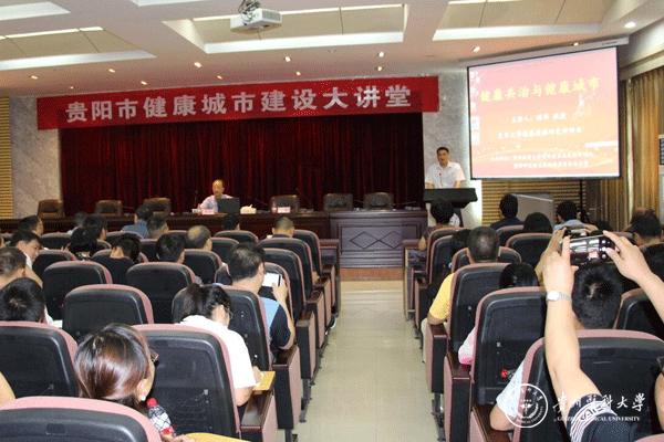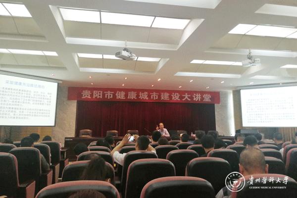 6月25日,我国健康城市建设领域知名专家、复旦大学健康传播研究所所长傅华教授应邀到永利官网作了题为《健康共治与健康城市》专题讲座。讲座在北校区道德讲堂进行,副校长罗鹏主持。永利官网贵州省卫生发展研究院院长张爱华,贵阳市爱卫办副主任黄秋辰以及贵阳市健康城市建设相关部门的领导、工作人员300余人聆听了讲座。