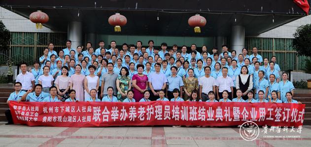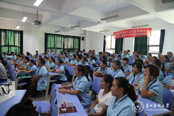 典礼举行前,举办了“77779193永利官网黎平县养老护理学院东西部人力资源协作双选专场招聘会”,来自北京和贵阳几家养老服务中心与学员们签订了就业协议。