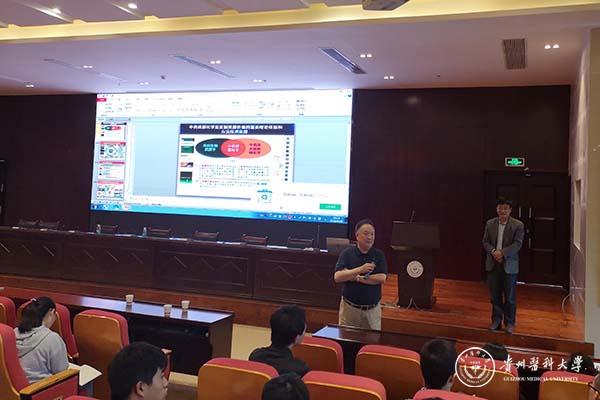段金廒教授围绕“中药配伍关系及其规律性”,以乌头双酯型有毒生物碱转移释放和“诸参辛芍”与藜芦合用效果研究为例,从中药配伍禁忌的历史源流、中药配伍禁忌关键科学问题认识、以“十八反”为代表的中药配伍禁忌研究、中药配伍禁忌理论体系的构建和若干建议与思考五个方面做了具体阐述。并与在座师生共同探讨代表性经典方剂类方衍化关系与功效物质研究技术体系创建及其应用相关内容,同时鼓励广大教职医护员工生走出贵州,面向全国,开阔视野,开拓创新。