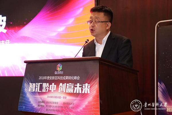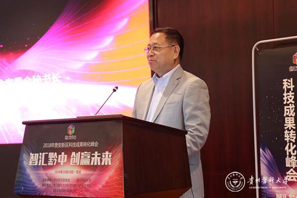 10月10日,由贵安新区管委会和永利官网共同主办的“智汇黔中 创赢未来——2018年贵安新区科技成果转化峰会”在永利官网举行,贵安新区管委会副主任邓波,教育部学校规划建设发展中心产教融合专委会秘书长杨捷,永利官网副校长罗俊,贵安新区特聘经济顾问孙保华,山东大学教授、政和科技股份有限公司董事长朱涛出席会议,贵安新区各高校科技成果转化工作负责人、园区、孵化平台、企业、众创空间代表等400余人参会。此次峰会是2018创响中国贵安站“智创贵安 融通未来”系列活动之一,分为高峰论坛、圆桌论坛两部分。