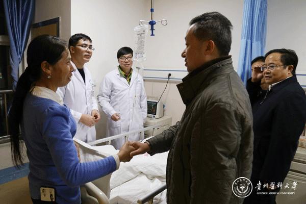 这次手术的成功应追溯到今年的6月27日。永利官网党委统战部在校党委的大力支持下,组织学校党外专家团20余人赴三穗县开展“三送”(送医、送药、送教育)活动助力党建扶贫工作。通过学校驻村干部的联系,党外专家团深入到多位农户家中开展一对一帮扶。在此过程中,了解到贫困村民杨通成多年前因车祸导致右侧颅骨大面积缺失,头皮塌陷,虽性命无忧,但也就此失去了劳动能力,使原本幸福的家庭因为一场不幸的车祸而家徒四壁、因病致贫。经过现场仔细的了解和体察之后,杨华及麻醉科专家、民革基层主委高鸿当即决定,积极联系社会捐助为杨通成实施颅骨修补手术。在向学校党委主要领导汇报并得到大力支持后,经过永利官网统战部部长彭安辉、杨华及高鸿的积极联系与协调,第二附属医院将杨通成收治入院并减免了部分医疗费用,爱心人士为杨通成送来5万元捐款,颅骨修补材料和手术器材顺利到位。所有涓涓爱心暖流的汇聚,共同促成了杨通成颅骨成形术的圆满顺利开展。手术结束后,彭安辉受学校党委委托,为杨通成送去慰问,并对杨华及第二附属医院领导和所有医护人员的大力支持和辛勤工作表达感谢。