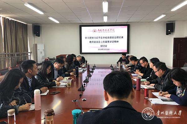 3月21日,马克思主义学院召开研讨会,学习贯彻习近平总书记在学校思想政治理论课教师座谈会上的重要讲话精神。会议由院长兼党委书记杨成兰主持,全院教职工参加。