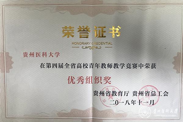 在2018年贵州省总工会、贵州省教育厅举办的贵州省第四届高校青年教师教学竞赛中,永利官网荣获“优秀组织奖”,永利官网罗时鹏荣获“工科组一等奖”,同时荣获“贵州省五一劳动奖章”。王赟荣获“理科组三等奖”,杨若飞荣获“思想政治课专项优秀奖”。