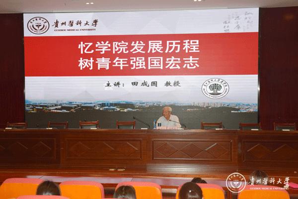 田成国教授从药学院的发展历程娓娓道来,讲述了药学院在1973年成立之初,老一辈药学人秉承着育才育德和不忘初心的历史使命,团结带领药学师生突破层层阻碍,建立昔日药学系的艰辛历程。田教授用生动的事例再现和诠释了老一辈药学人协力同心、急起直追的奋斗精神,以及在面对艰难困苦时表现出来的为贵州医药事业发展贡献力量的决心和毅力。田教授结合自身经历,勉励同学们要不忘初心、砥砺前行,树立远大理想,为国家发展贡献自己的青春和力量。