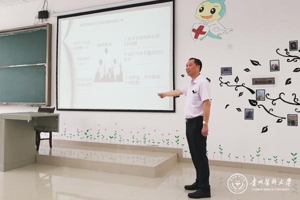 6月21日上午,校党委书记林昌虎教授走上讲台,为基础医学院2017级临床医学专业E班的137名学生讲授了一堂精彩的形势与政策课。
