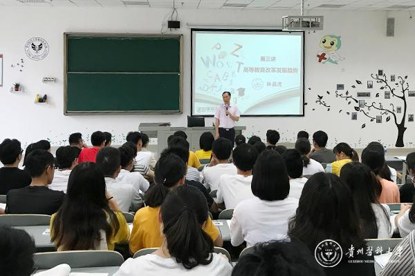 林昌虎还就当今国际社会主要热点——中美贸易战、高等教育的发展规律和永利官网学科建设的发展历程等问题,畅谈了自己的理解和体会,引起现场学生的强烈共鸣。最后,林昌虎勉励贵医广大青年学子,要树立远大理想,厚植爱国主义情怀,刻苦学习、增强本领,切实肩负起新时代赋予医学生的责任和使命;同时,要注重人格涵养和医德培育,为成为一名具有“仁心仁术”的医者而努力奋斗。