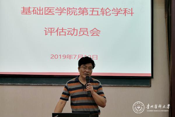 7月12日下午,基础医学院第五轮学科评估工作动员大会在厚德楼1201教室举行。副校长罗俊、科技处处长郭兵出席会议,基础医学院党政领导及全体教职工参加了此次会议。会议由基础医学院党委书记徐国强主持。