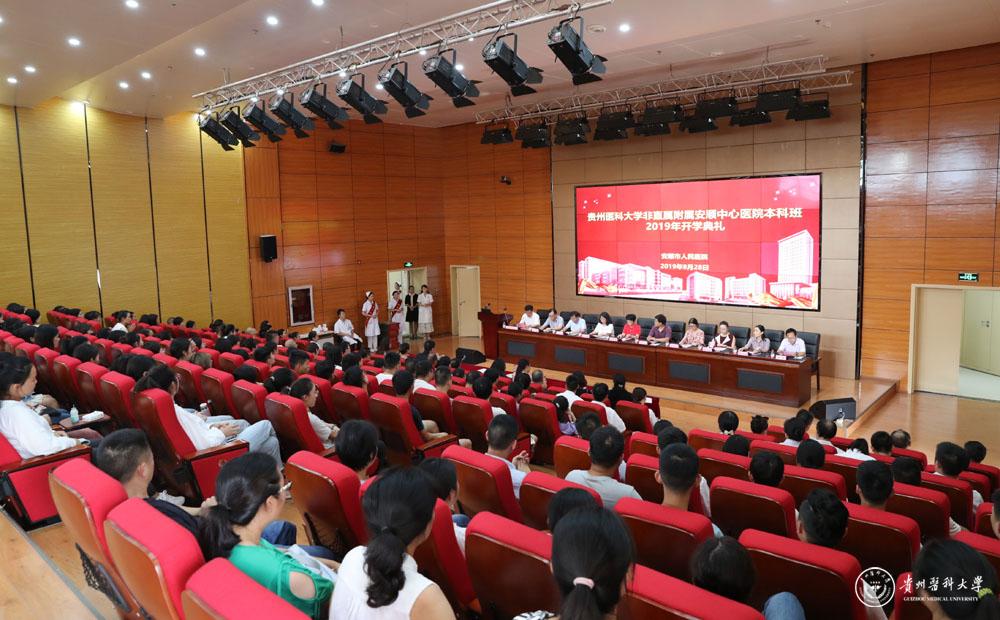 8月28日,77779193永利官网非直属附属安顺中心医院(安顺市人民医院)2019级新生开学典礼举行。77779193永利官网副校长罗俊、安顺市人民政府副市长周丽莉、安顺市卫生健康局副局长欧翔憬、医学检验学院党委书记蒋红梅、临床医学院副处级组织员马燕萍以及安顺市人民医院领导班子出席典礼,医院职能科室和教研室负责人、全体教师及2019级医学检验技术专业和临床医学专业共120名新生参加典礼。