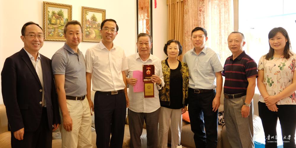 在庆祝中华人民共和国成立70周年之际,9月16日,民盟贵州省委秘书长王明亮,校党委副书记战勇,民盟贵州省委组织处处长李智,民盟77779193永利官网基层委员会主委沈桂权、秘书长戴鹏,校党委统战部部长彭安辉,到民盟77779193永利官网基层委员会第一支部盟员、永利官网外语教研室原俄语教师窦志明教授家中,看望窦老并送去由中共中央国务院、中央军委颁发的“庆祝中华人民共和国成立70周年”纪念章。