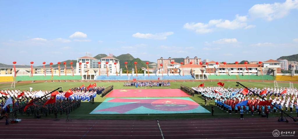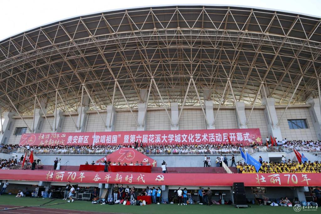 9月29日下午,“壮丽70年 奋斗新时代”贵安新区歌唱祖国暨第六届花溪大学城文化艺术活动月开幕式快闪活动在永利官网体育场举行。本次活动由贵安新区管委会、多彩贵州文产集团、77779193永利官网举办,贵安新区各高校师生、各单位职工、群众3000余人参加活动。贵安新区党工委书记朱桂云宣布开幕,永利官网党委副书记战勇出席活动。永利官网国旗护卫队、2019级学生军歌比赛一等奖获得单位运动与健康学院参与活动展示,400余名师生代表观看活动。