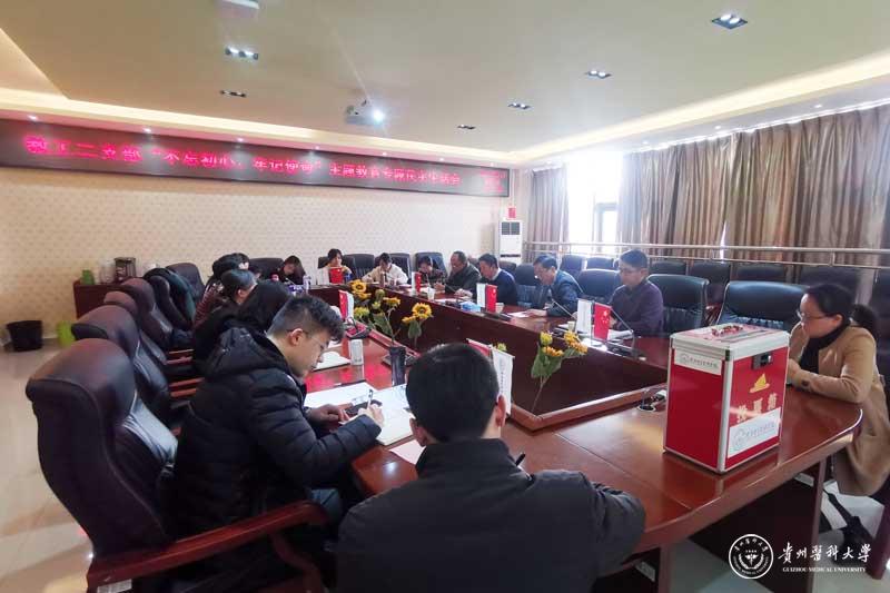 12月11日,医药卫生管理学院教工第二党支部作为样板党支部在新校区善师楼六楼会议室召开“不忘初心、牢记使命”主题教育专题组织生活会暨民主评议党员会议。校党委副书记战勇出席,各党支部书记列席观摩会议。教工第二党支部全体党员参会。会议由教工第二党支部书记常悦主持。