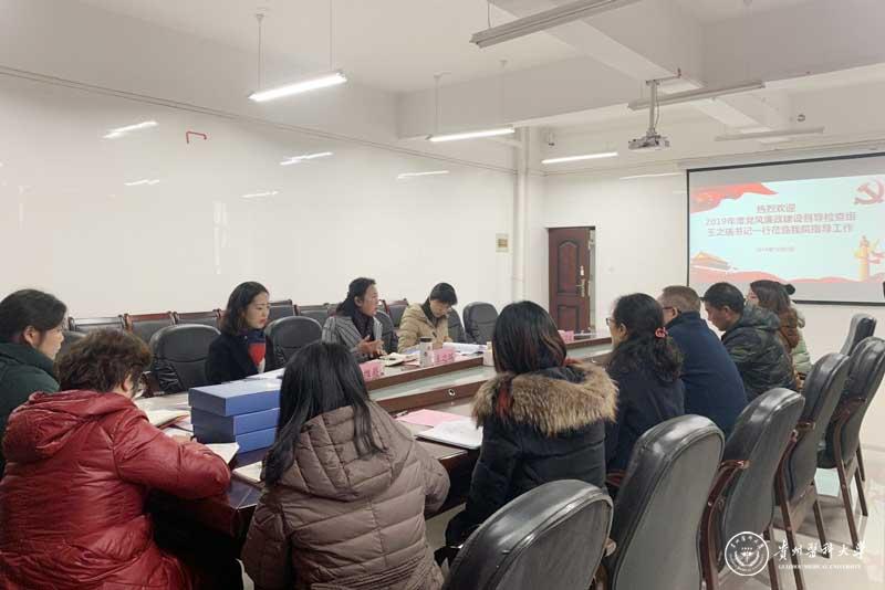 会上,曾柱对督导检查组来院指导检查工作表示欢迎。院党委副书记、纪检委员王妤煜从党风廉政建设主体责任制落实情况;落实民主集中制,严格执行“三重一大”制度;2019年度党风廉政教育情况;坚决反对“四风”,加强廉洁自律;积极参加各类廉洁文化创建工作;下一步的工作思路等六个方面汇报基础医学院2019年度党风廉政建设工作开展情况。张春林对学科建设经费使用情况进行补充汇报;陈峥宏对学院党委执行“三重一大”制度方面进行补充汇报。