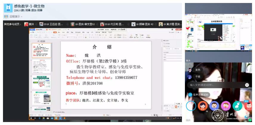 基础医学院魏洪教师,提前一周做好准备工作,各平台跑一遍做好备案,雨课堂提前3天发布课件,顺利完成今天直播课程。