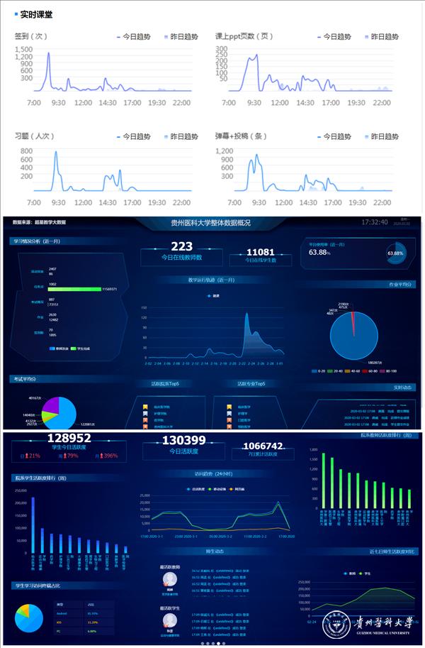 为保障线上教学的顺利进行,技术部门及时对网络、平台进行更新和维护,为线上教学不分昼夜辛勤付出,对超星、雨课堂,慕课平台全体工作人员为保障线上教学提供的全力支持表示衷心感谢!