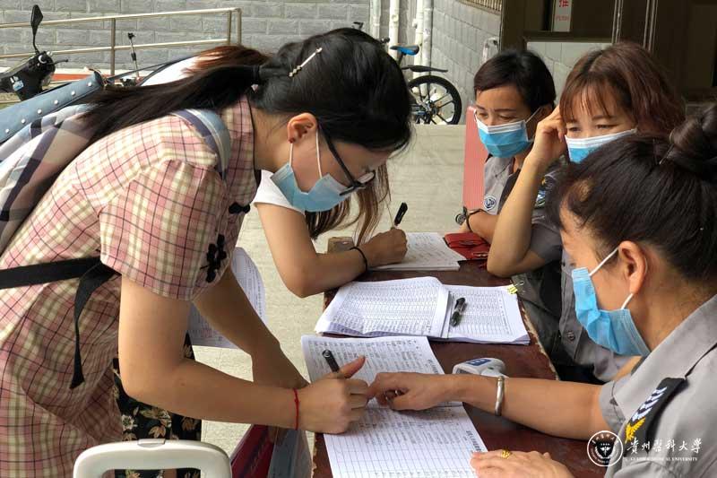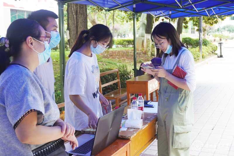 迎新现场,各位新生自觉佩戴口罩,有序排队,保持距离,避免聚集。各岗位负责老师按部就班,高效完成信息核查、照片信息采集、宿舍安排、安全保障等工作,使得此次迎新有条不紊地进行着。
