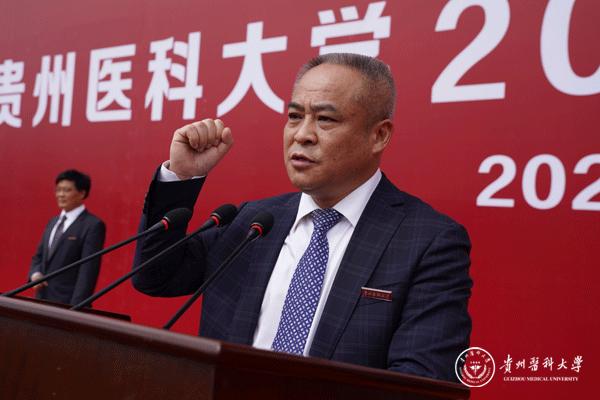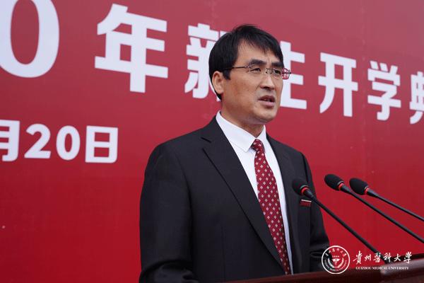 大会在雄壮的国歌声中拉开帷幕。党委副书记、校长罗鹏希望同学们从疫情防控这段特殊的经历深刻体悟人生的价值追求和生命意义。立足新时代,广大青年不仅要有“乱云飞渡仍从容”的自信和“无限风光在险峰”的决心,更需要有“吹尽狂沙始到金”的坚持,立志成为医学科学的创新先锋,成为未来贵州、未来中国、乃至世界医学事业的引领者。他勉励新生们做到四点,一是志存高远,厚植家国情怀,常怀成才报国之志;二是刻苦学习,锻造医者素养,培养创新思维;三是明德修身,涵养人文精神,在精勤不倦中成就梦想;四是增强体魄,以自身健康守护全民健康。