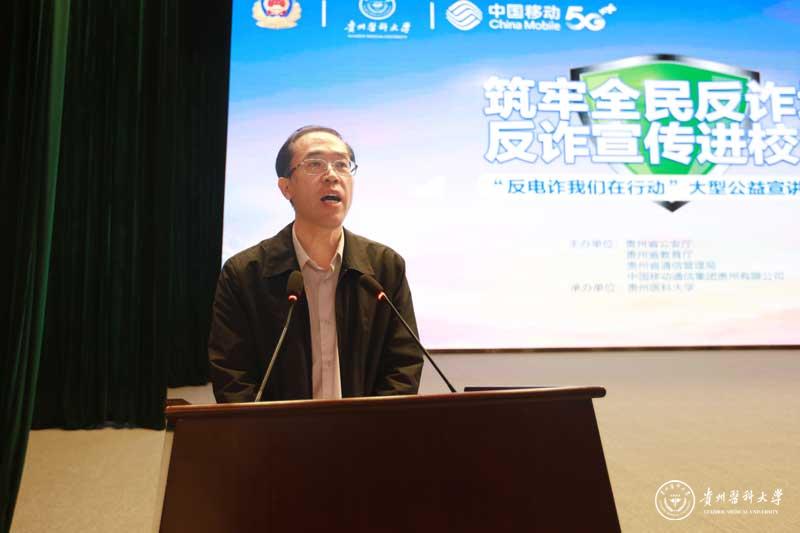 战勇在致辞中指出,非常感谢省公安厅、教育厅、通信管理局、贵安新区公安局、贵州移动公司等单位对永利官网承办本次活动的大力支持,当前各种花样翻新的电信网络诈骗犯罪已然成为侵害人民群众财产安全的一大社会毒瘤,严重影响社会秩序和安全稳定,加强针对电信网络诈骗的打击、防范、宣传、教育工作势在必行、责任重大,永利官网将以开展此次宣传进高校活动为契机,整合各方资源,多渠道多形式推进防范电信网络诈骗犯罪工作,形成强大合力,有力震慑此类犯罪行为,从源头上遏制此类犯罪危害高校师生,特别是大学生群体的利益,切实在校园及周边筑起防范电信网络诈骗犯罪的坚固“高墙”。