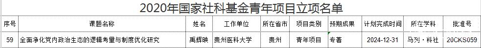 国家哲学社会科学基金项目是人文社会科学领域公认的我国哲学社会科学领域层次最高、权威性最强的研究项目,其立项数量是学科评估、学术评价的重要指标之一。希望禹辉映老师继续弘扬严谨治学、百折不挠的科研精神,再创佳绩。